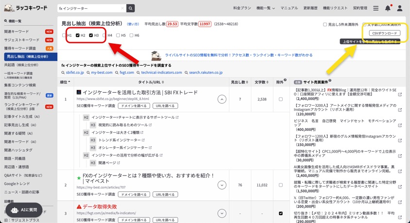 1. キーワードから競合の見出しを抽出