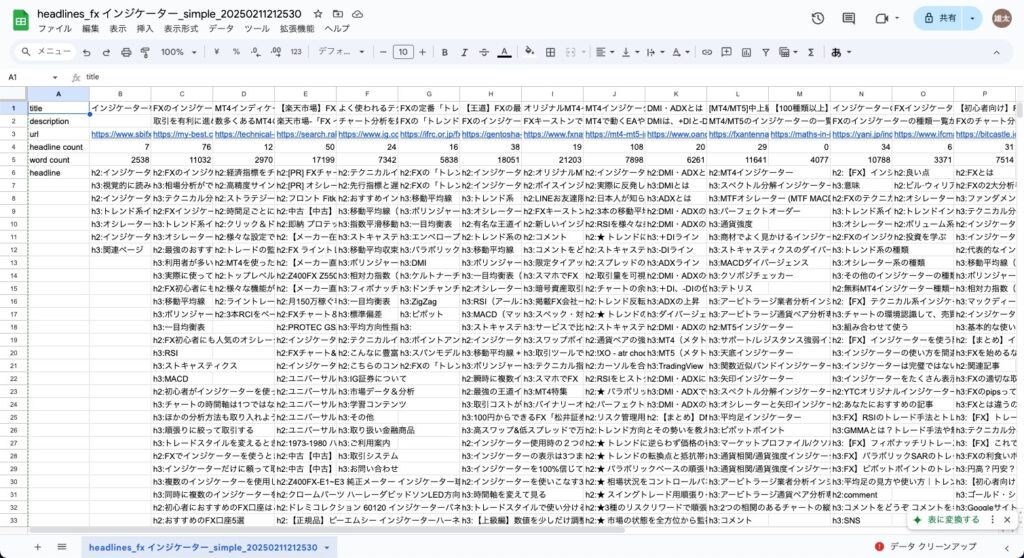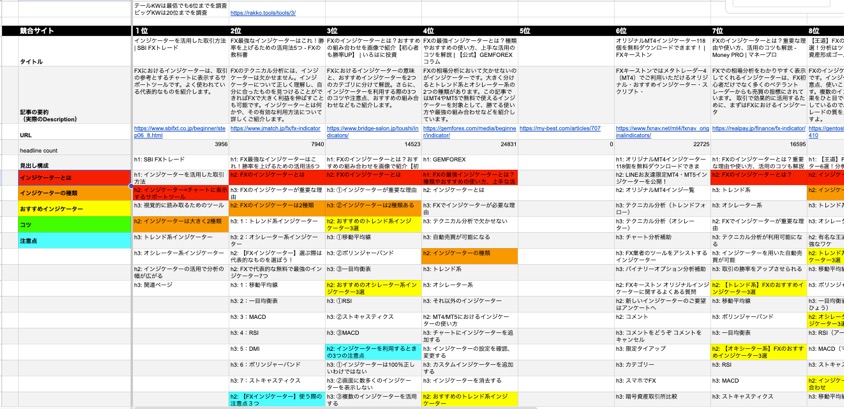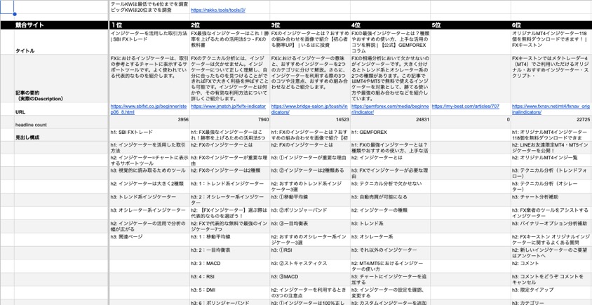 競合見出しをコンテンツシートにコピペ