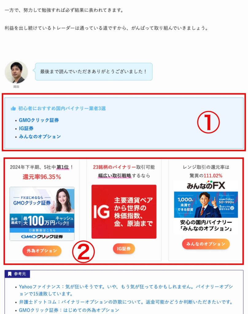 実際の記事では、読者が一通り読み終わった記事の最後に設置しています。