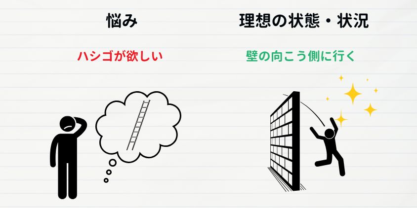 たとえば、下の図解のように、ハシゴが欲しい悩みを持っている男性にハシゴを渡してみましょう。