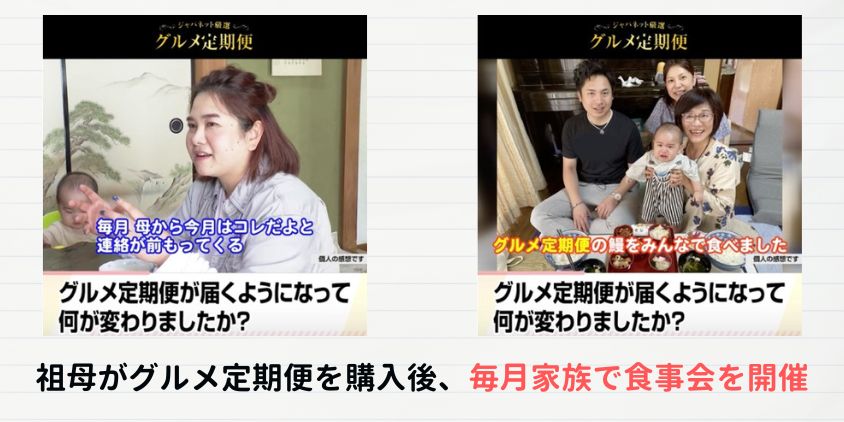 「厳選グルメ定期便」という商品に使われており、20万人が購入している大ヒット商品です。