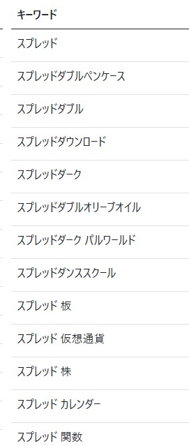 金融取引における売買差の「スプレッド」についてKW調査をすると、次のような結果がでます。
