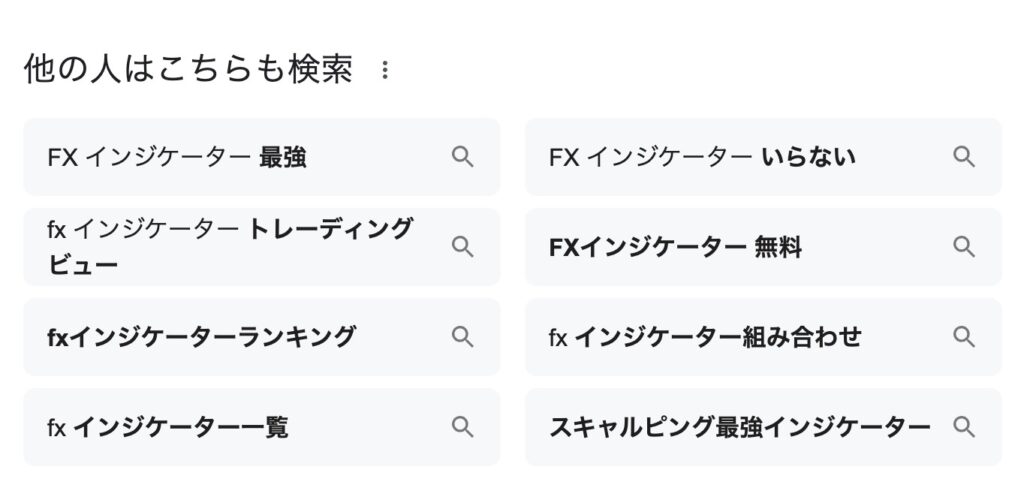 Googleの検索結果に表示される「他の人はこちらも検索」ワードを調べましょう。